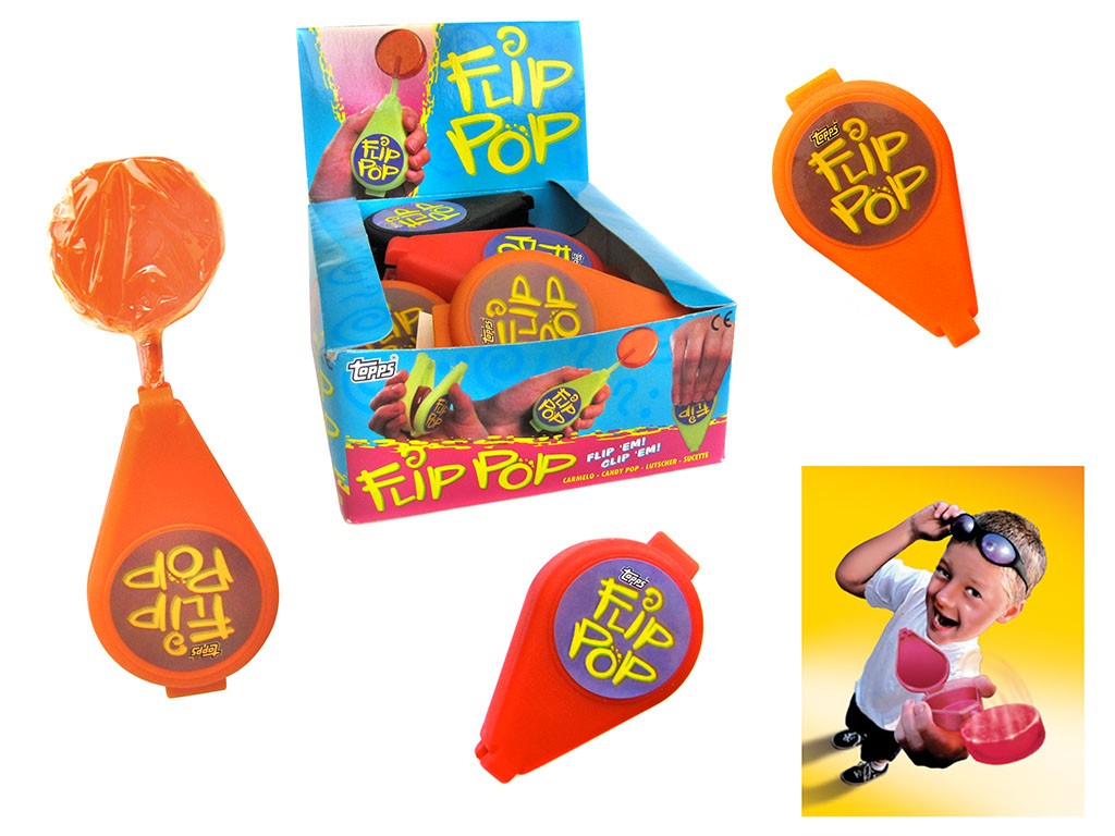 Another great product from Topps, the leader in kids pops! Flip open the case to reveal the pop and the case becomes the handle. A huge seller for years in Europe and Japan.